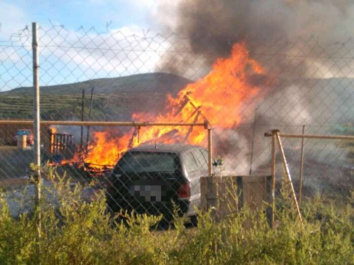 Telde.- Un incendio destruyó este jueves una casa de madera en Telde, hecha con palés, ocasionó daños a un coche y calcinó a un perro que estaba dentro del habitáculo.