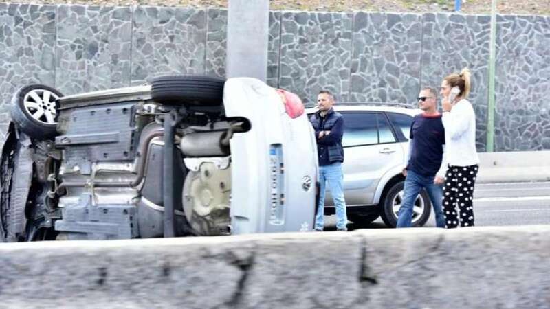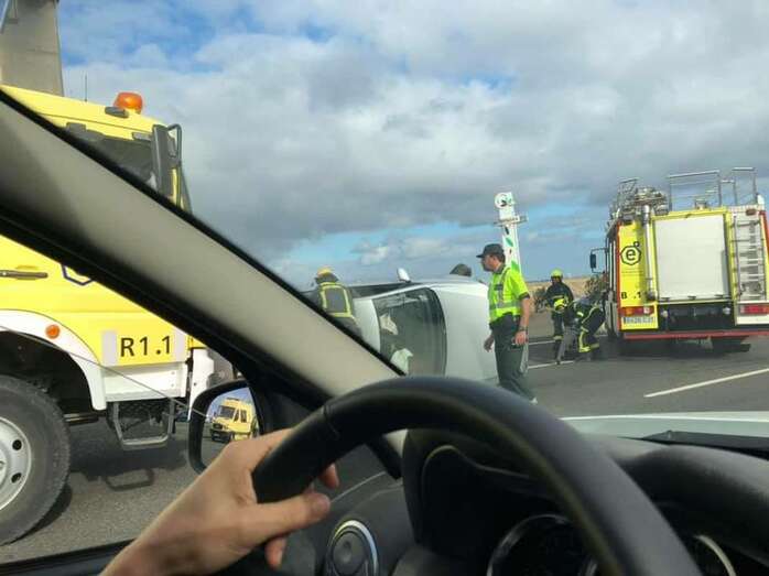 Telde.- Un turismo volcó de forma lateral a primera hora de la tarde de este miércoles en la GC-1 a la altura del Centro Comercial Las Terrazas en sentido Las Palmas-Sur, tras colisionar con otro vehículo.