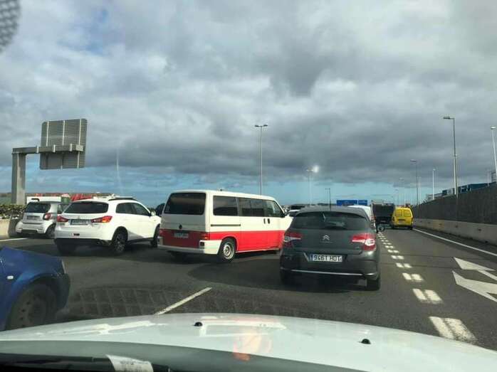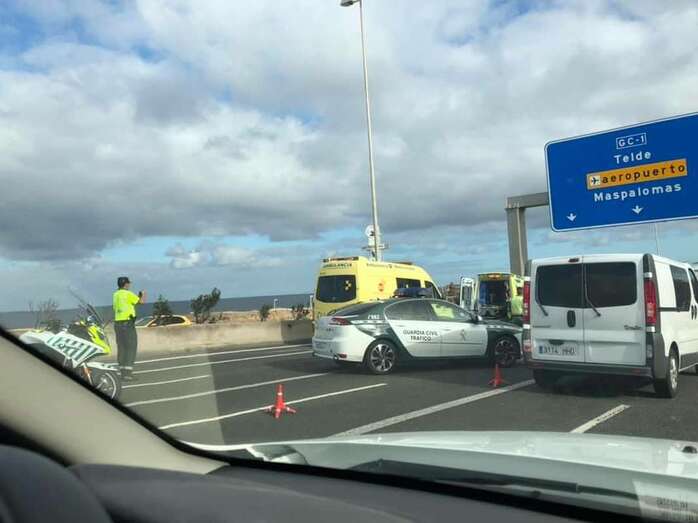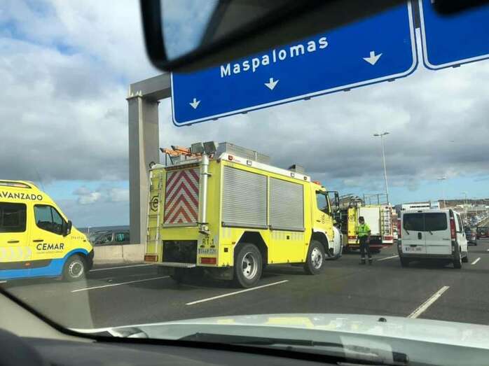 El accidente generó importantes retenciones en la circulación rodada que afectaron a la salida sur de Las Palmas de Gran Canaria al ocupar el vehículo accidentado uno de los carriles.