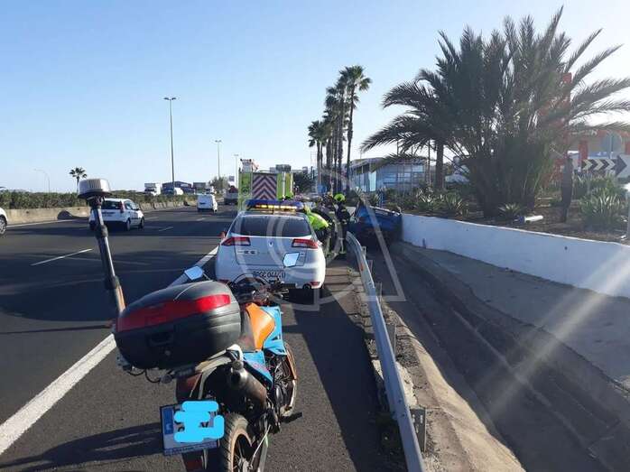 El siniestro, según han precisado fuentes del Centro Coordinador de Emergencias y Seguridad (Cecoes) 1-1-2 del Gobierno de Canarias, ocurrió sobre las 16.55 de este martes. El vehículo quedó incrustado entre la valla de seguridad y el muro de un parterre ajardinado. La única ocupante del turismo accidentado logró salir de él sin ayuda.