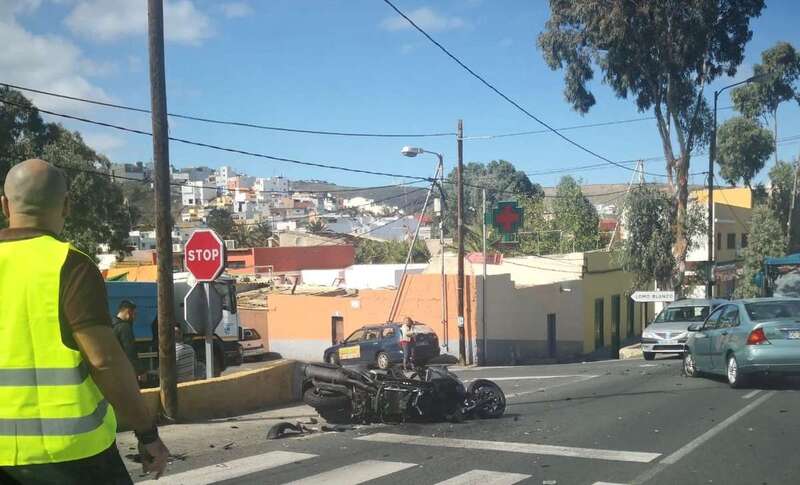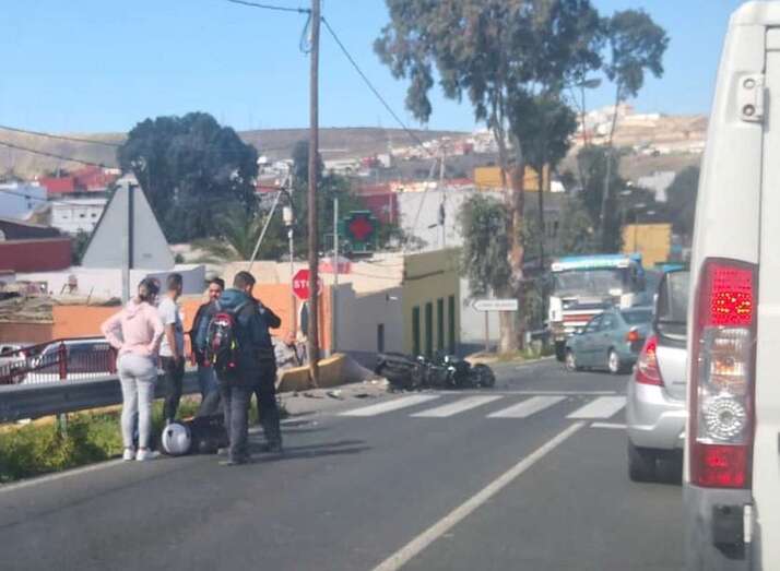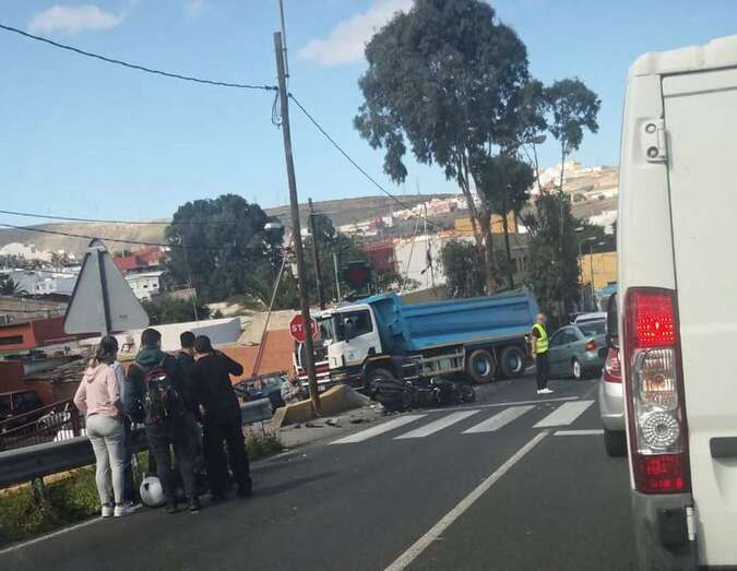 Telde.- Un motorista ha sido evacuado a primera hora de esta tarde con heridas de carácter moderado después de colisionar con un vehículo pesado en la carretera general de Jinámar (GC-100), a la altura del polideportivo Juan Carlos Hernández.