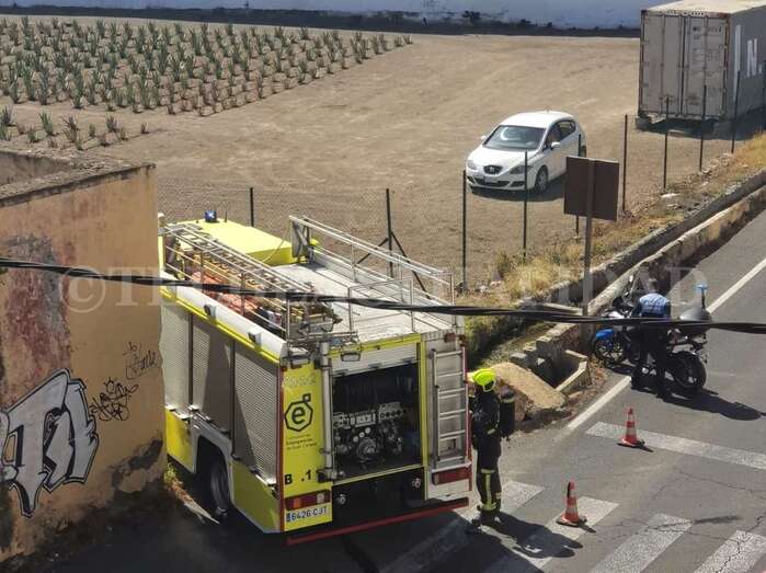 Un vehículo de primera salida con una dotación se desplazó hasta la zona para sofocar las llamas, que tuvieron su origen junto a la carretera general que conecta el casco de Telde con los barrios de El Calero y el Cruce de Melenara, a la altura del número 153, entre la calle Adán y la plazoleta de las Tres Tierras; y que provocaron una pequeña columna de humo blanquecino.