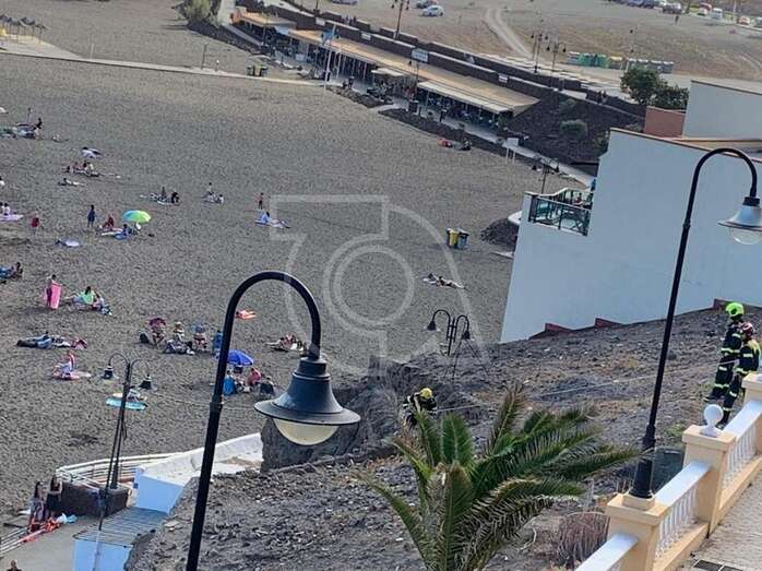 Telde.- Bomberos del parque zonal de Telde y agentes de la Policía Local han sido movilizados hace unos minutos al producirse un pequeño desprendimiento en el cantil costero próximo al muelle de Melenara y en cuya base se encuentran varias plazas de aparcamiento reservado para vehículos con personas discapacitadas.