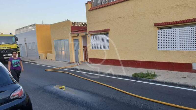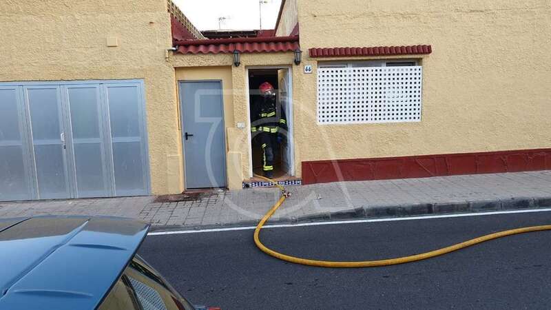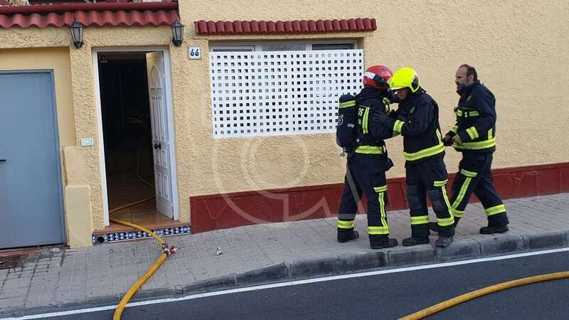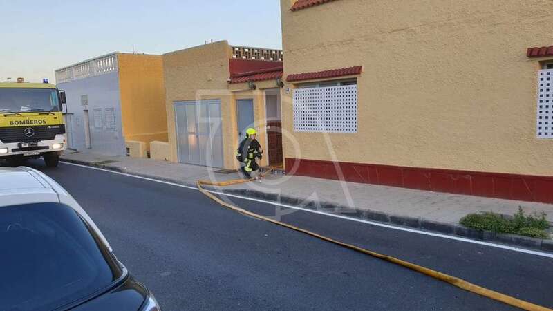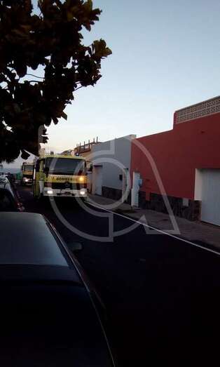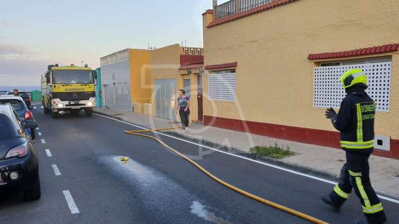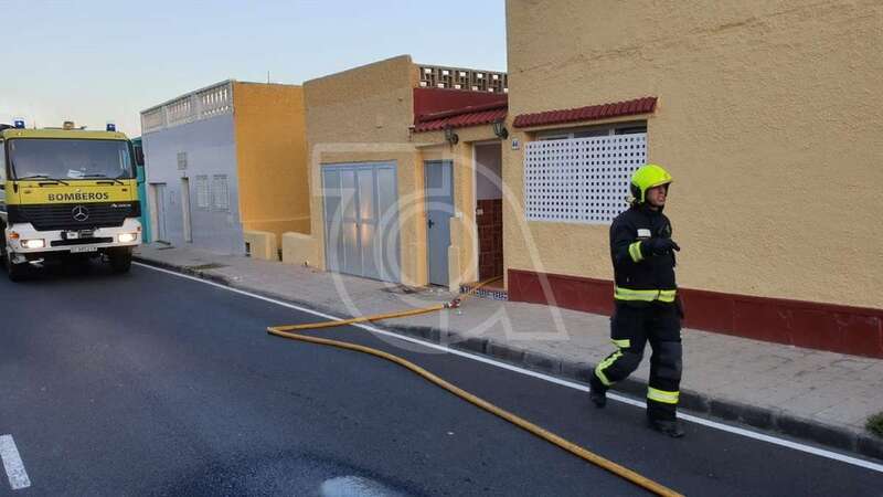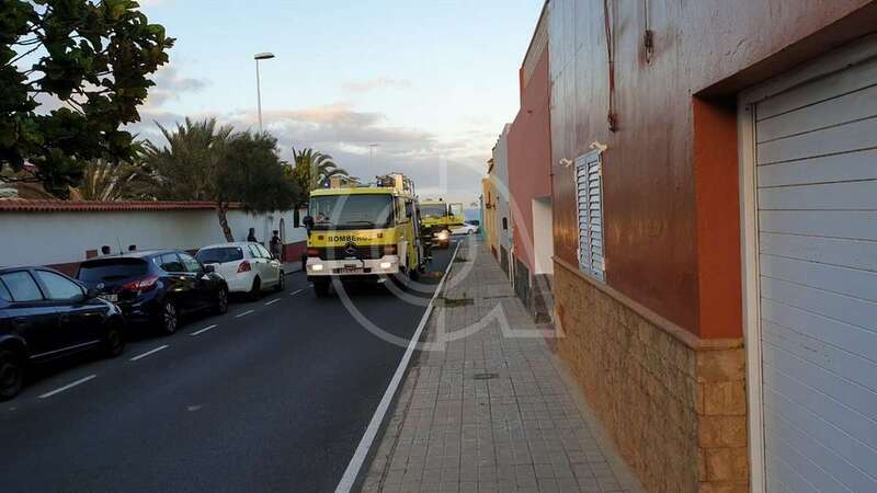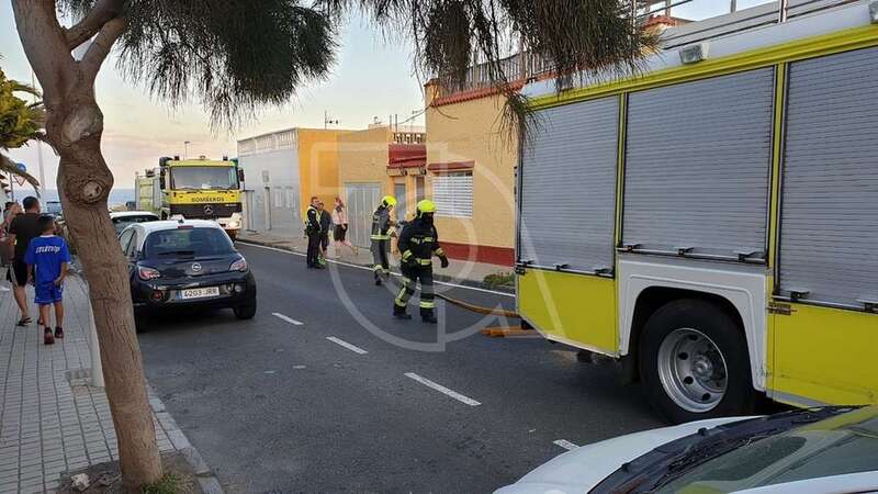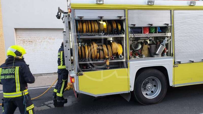 Dos unidades móviles de efectivos del Consorcio de Emergencias de Gran Canaria se desplazaron con rapidez a la zona y desplegaron mangueras para extinguir las llamas y ventilar luego la estancia donde se produjo el siniestro.