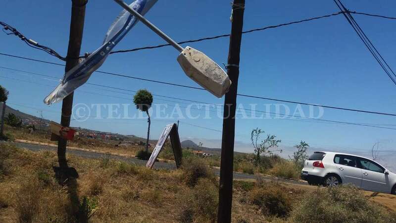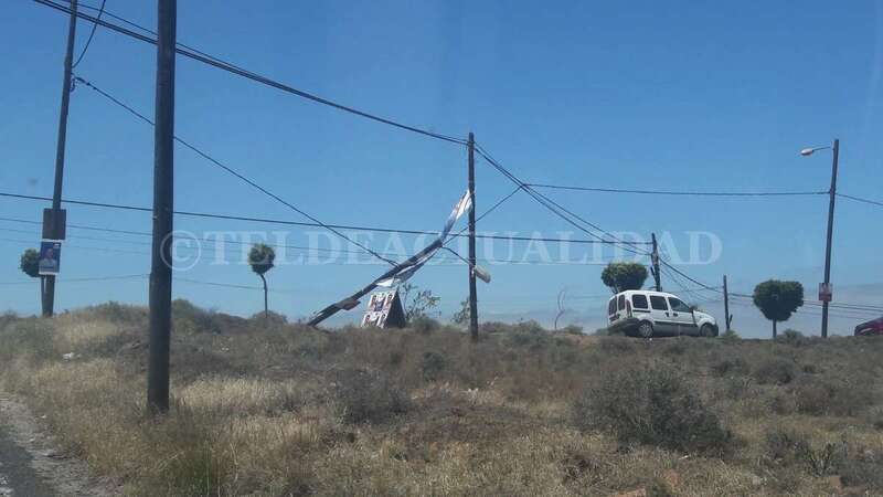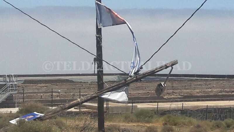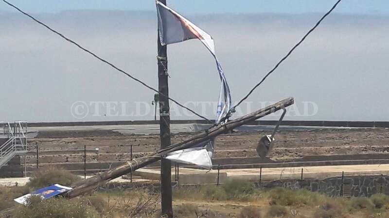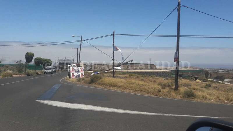 Telde.- El viento que arrecia este martes en Telde, con rachas de hasta 32 kilómetros por hora, ha propiciado la caída de un poste de luz en la zona de La Medianía, a escasos metros del colegio Saulo Torón. Los vecinos advierten del peligro que puede suponer para los escolares o viandantes en general.