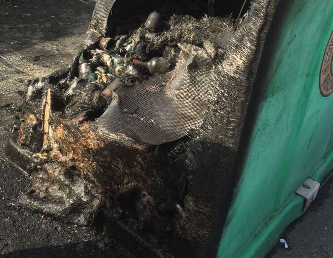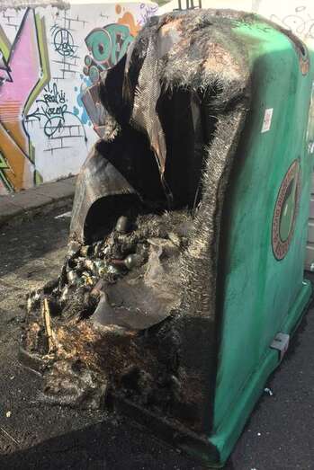 Telde.- Enésimo episodio vandálico contra recipientes para la recogida de basura y residuos en Telde, en esta ocasión en el barrio de San Juan. Dos contenedores, uno de papel y cartón y el segundo un iglú verde para el vidrio, ardieron esta pasada madrugada en la calle Manuel Álvarez Peña, junto al Instituto José Arencibia Gil y a muy poca distancia de la Comisaría de la Policía Nacional.
