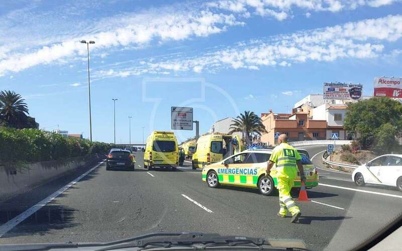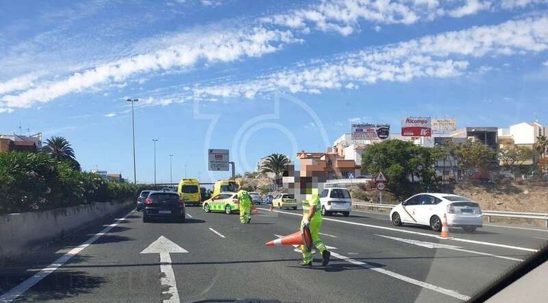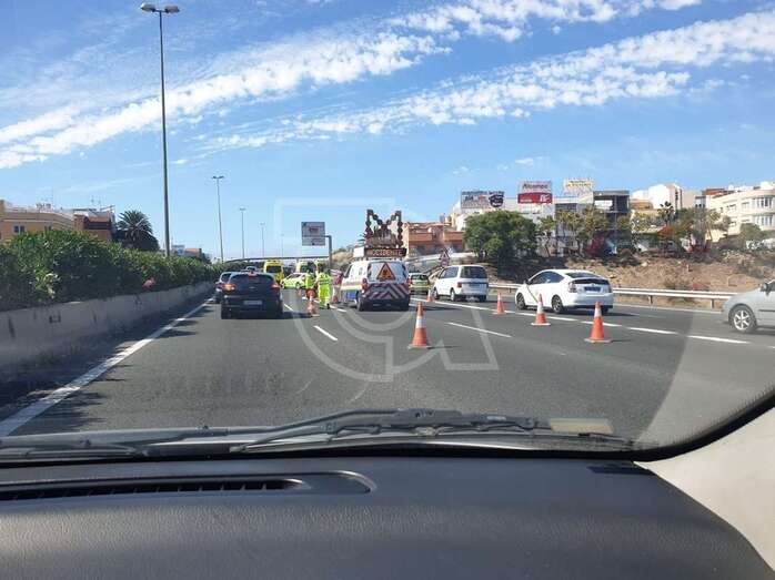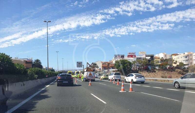 La colisión, que provocó retenciones de tráfico, tuvo lugar a las 16.48 horas en las inmediaciones de la vía de incorporación desde el Parque Empresarial de Melenara (Las Rubiesas) a la GC-1.