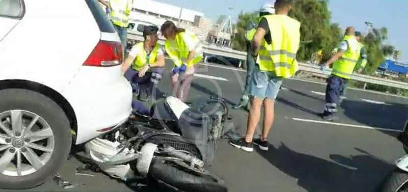 Telde.- Un motorista resultó con policontusiones de carácter menos grave en un accidente ocurrido hace unos minutos en la autovía GC-1, en dirección norte, a la altura del Centro Comercial Alcampo. TA avanza imágenes y video.