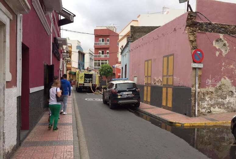 El incendio obligó a la Policía Local a cortar y desviar el tráfico en la calle Roque. También acudieron tres patrullas del Cuerpo Nacional de Policía.