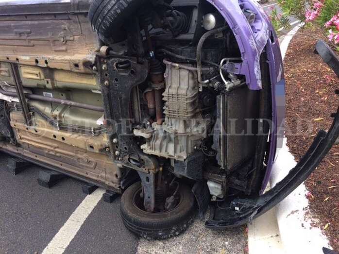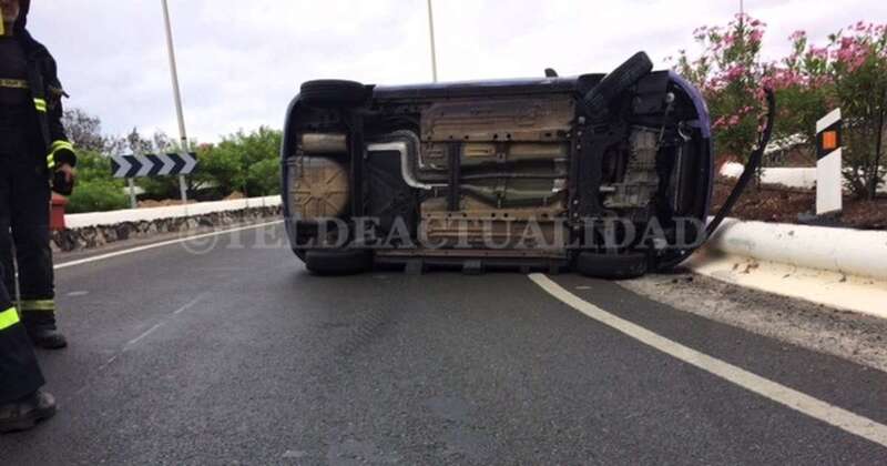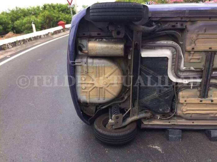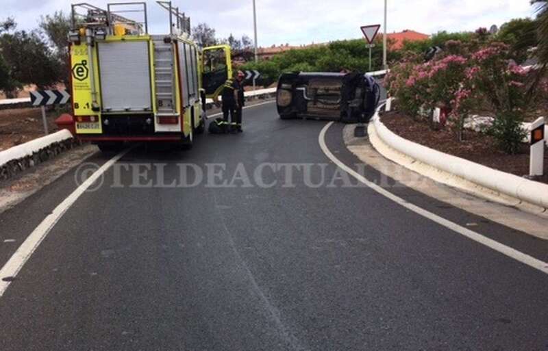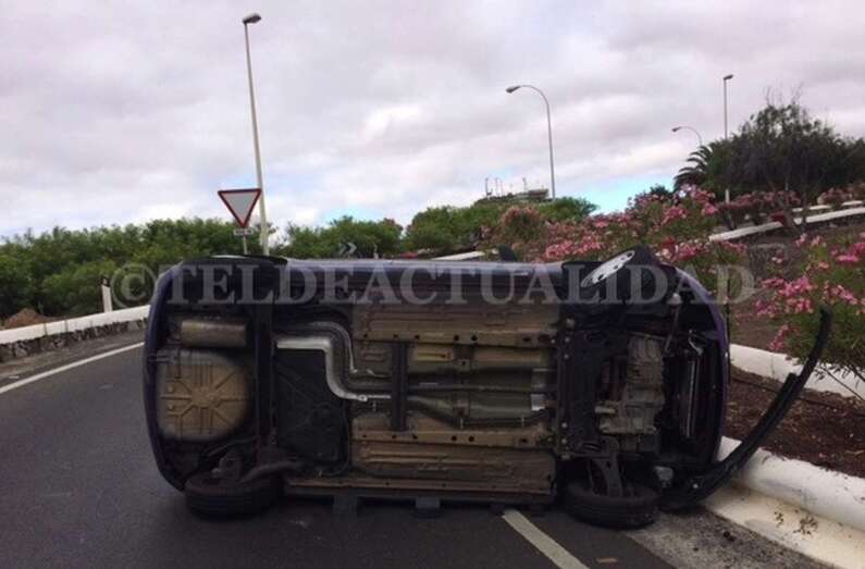 Telde.- Un turismo ha volcado este viernes en uno de las conexiones de la Avenida del Cabildo con la GC-1, en sentido hacia la capital grancanaria. Una mujer y una menor fueron auxiliados a salir del coche por otros conductores y evacuadas en ambulancia.