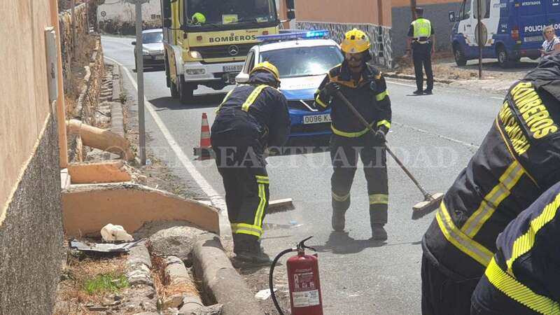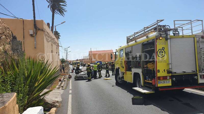 Dos dotaciones de bomberos del Consorcio de Emergencias acudieron en ayuda de la conductora, que resultó ilesa y rehusó recibir asistencia sanitaria. También fueron movilizados efectivos de la Policía Local de Telde, entre ellos la unidad de Atestados.