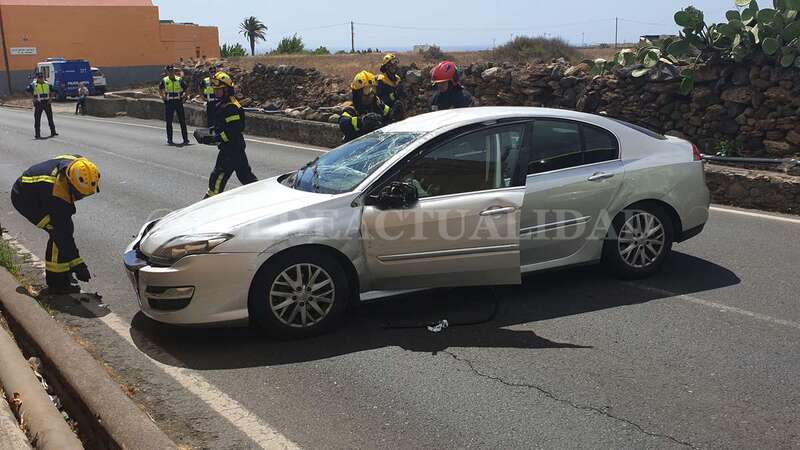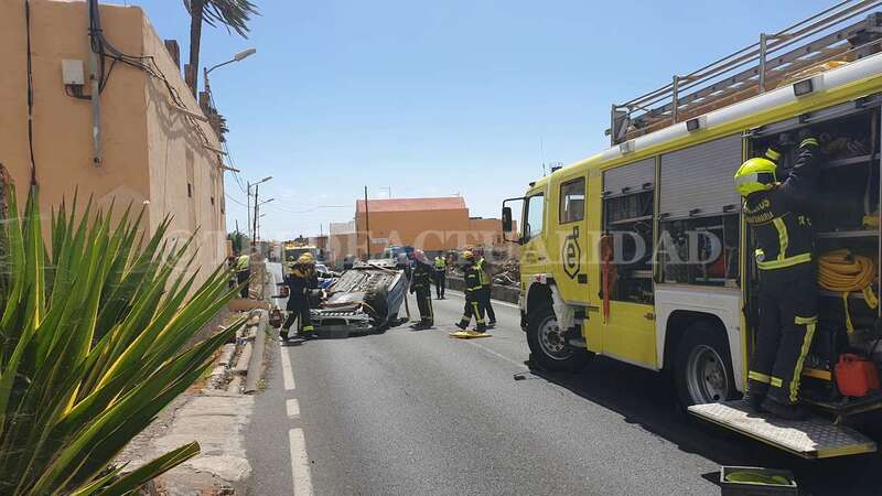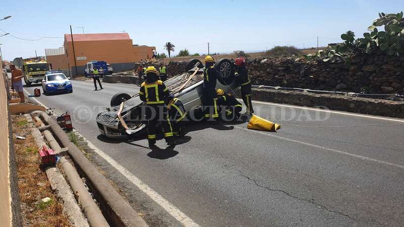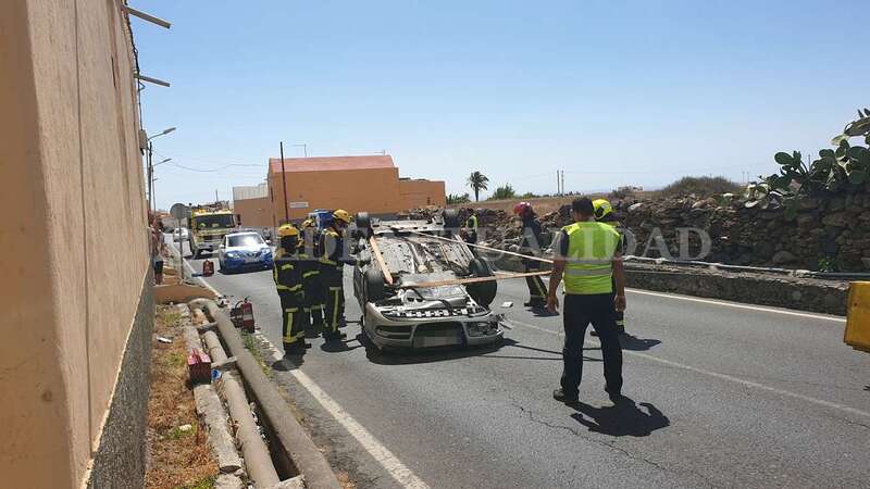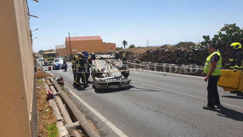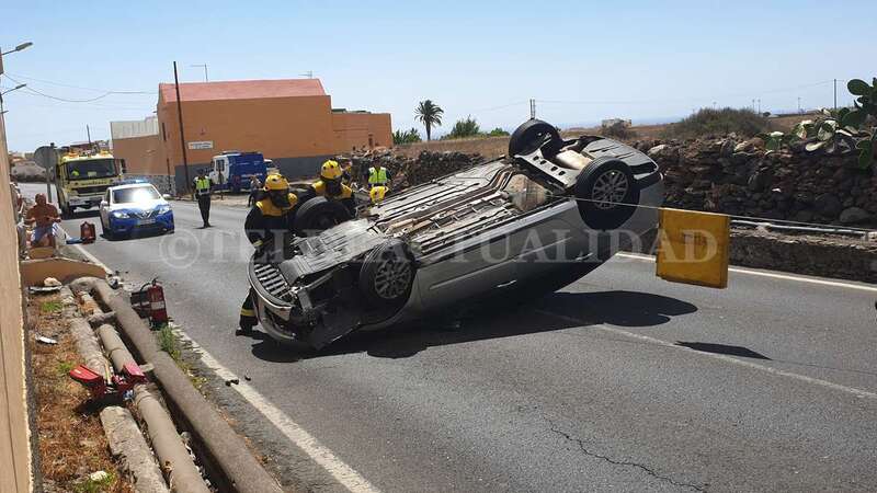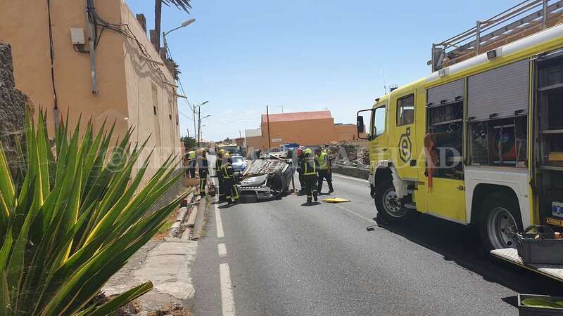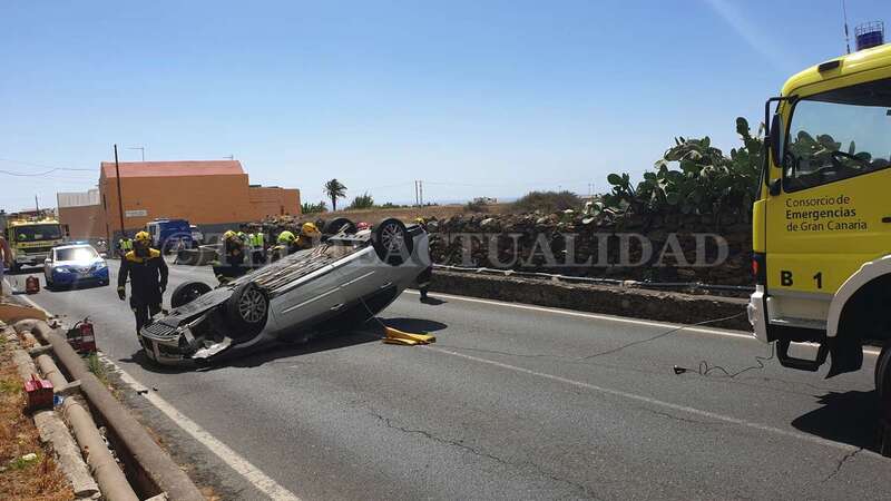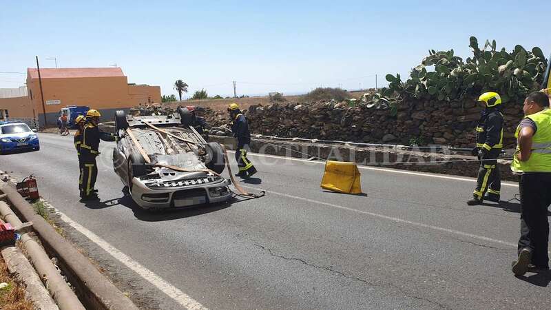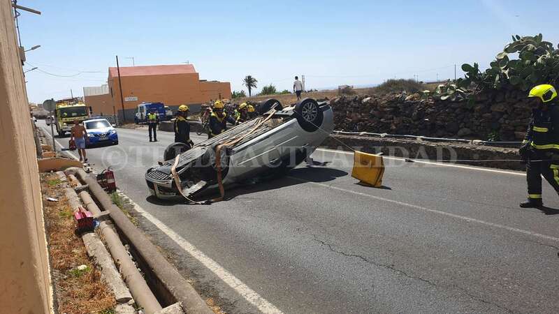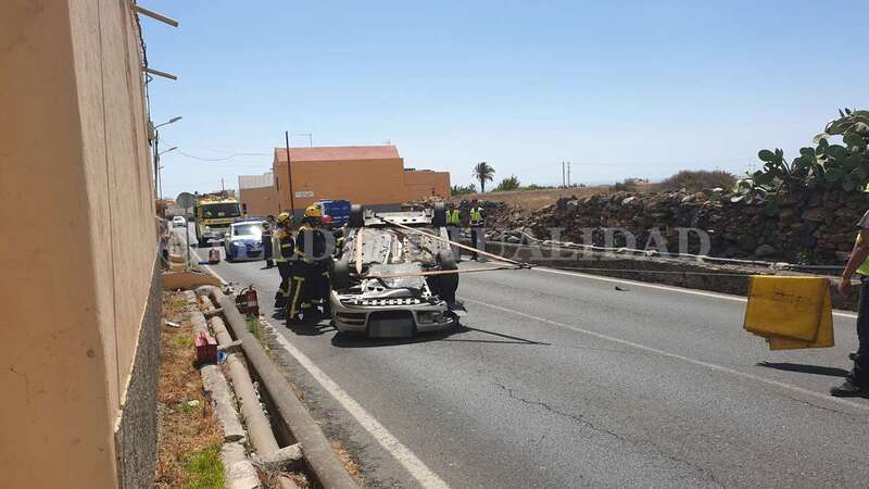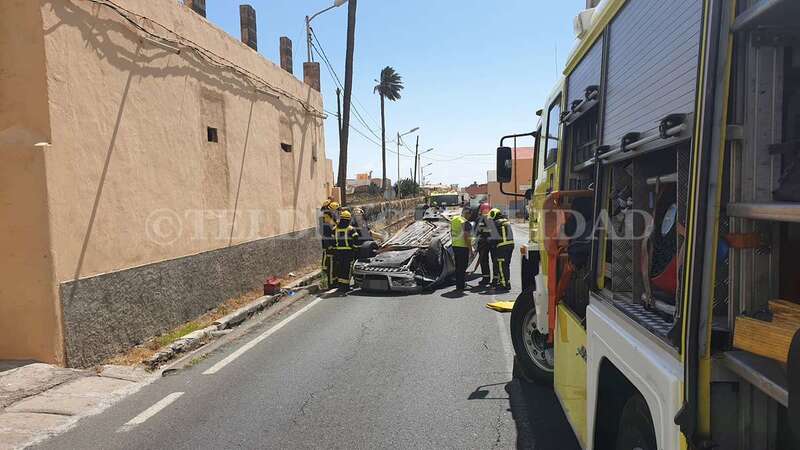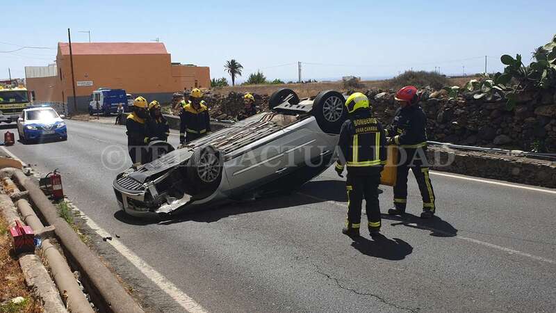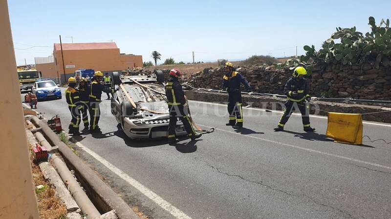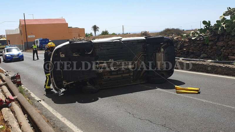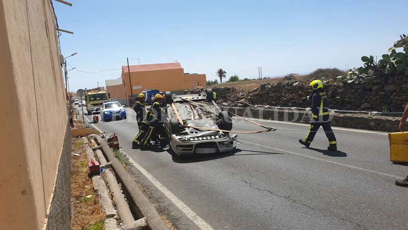 Telde.- Una conductora de unos 40 años de edad resultó ilesa después de sufrir un accidente de tráfico este lunes cuando circulaba por la GC-102, la carretera general de El Calero, hacia el casco de Telde. El vehículo volcó en el tramo comprendido entre el Callejón del Castillo y el área deportiva de Narea.