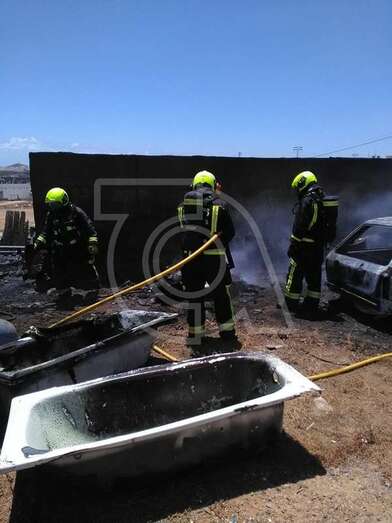 El fuego afectó a unos 50 metros cuadrados de superficie de basura acumulada en la parcela, trastos viejos (bañeras), palés de madera y a un coche abandonado.