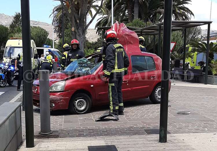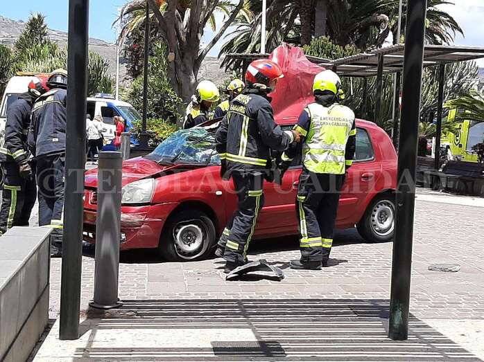 El siniestro ocurrió sobre las 12.45 horas en la Avenida del Cabildo (GC-10), en sentido bajada, a la altura del paso de peatones ubicado frente al edificio de La Tortuga, a unos pocos metros del instituto Profesor Juan Pulido Castro (Arnao).