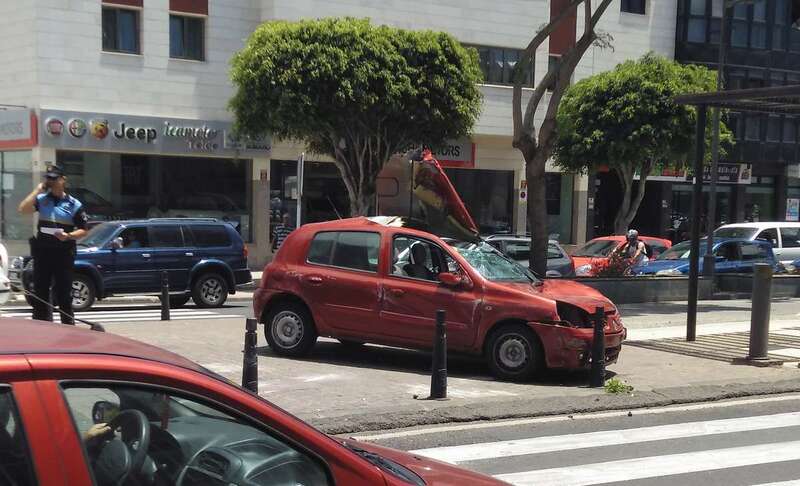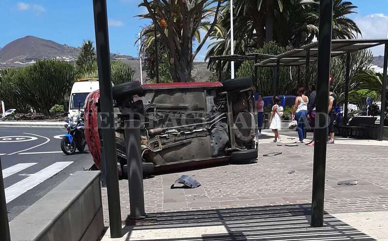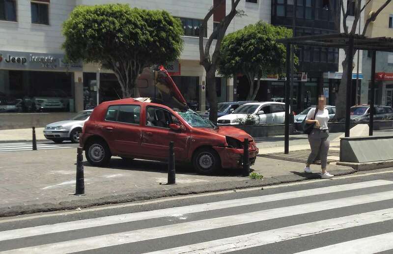 Al parecer, el vehículo chocó contra otro coche y salió despedido bruscamente hacia la zona peatonal, donde cayó sobre el lado derecho.