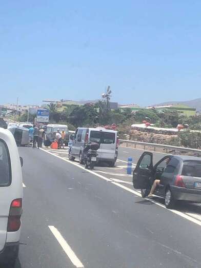 Desde el área de Carreteras del Cabildo informan que el accidente, que ha producido en plena hora punta, está generando importantes retenciones en la circulación en sentido sur, por lo que recomiendan a los conductores buscar itinerarios alternativos. De hecho, el atasco ya alcanza los túneles de Piedra Santa y Adolfo Cañas, que por precaución, para que no se queden vehículos atrapados en su interior, se han cerrado temporalmente al tráfico.