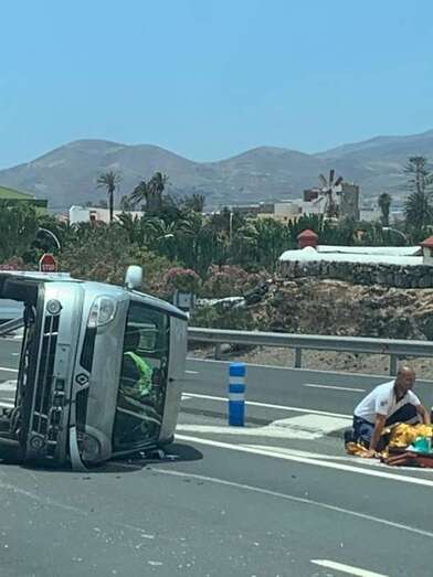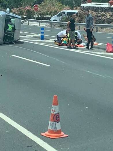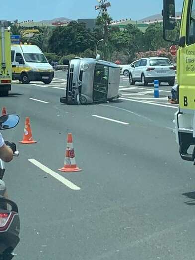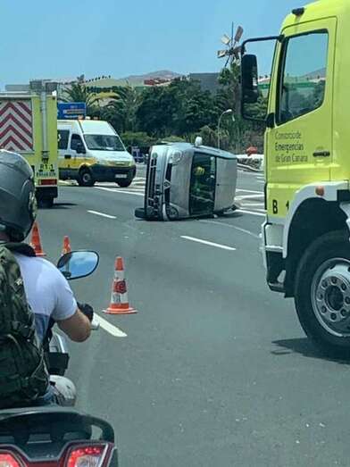 Telde.- Un vehículo ha sufrido un vuelco, después de dar varias vueltas de campana, en un accidente cuando circulaba en sentido sur por la GC-1 a la altura de Telde, frente al Parque Comercial de La Mareta y junto al enlace con la Avenida del Cabildo.