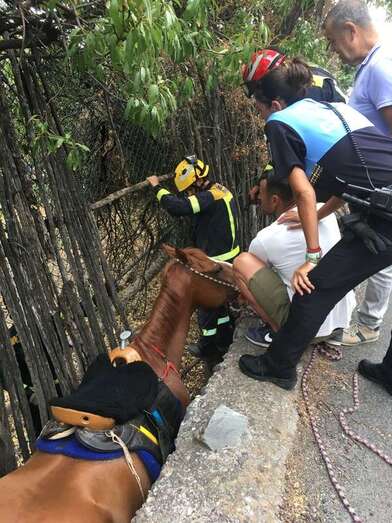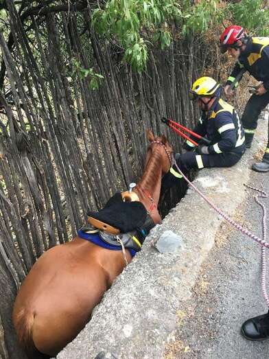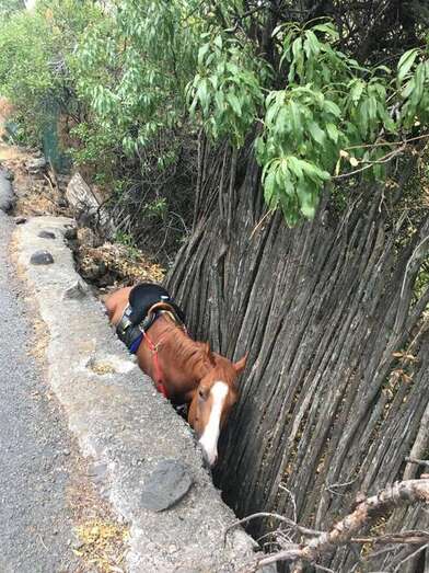 Telde.- Los bomberos del Consorcio de Emergencias y la Policía Local de Telde colaboraron este domingo en el rescate de un caballo que quedó atrapado en una zanja a la altura de Tecén.