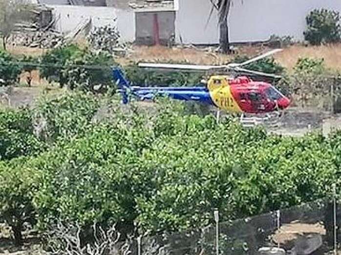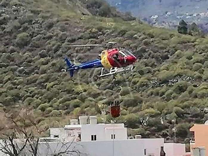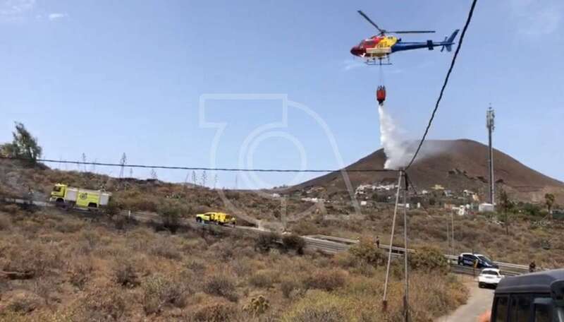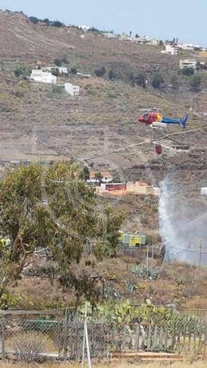 Telde.- Un helicóptero del Cabildo de Gran Canaria y bomberos del Consorcio de Emergencias actúan en estos momentos en el sector de la carretera de Los Picos, la que sube de El Ejido a Lomo Magullo, para tratar de sofocar un incendio que afecta a matorrales.