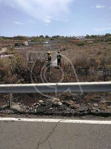 En el lugar del siniestro, una zona de matorrales ubicada en el margen izquierdo de la vía de Los Picos a la entrada del camino Las Escobinas (Llanos de Madrid), se encuentran también, según la información recabada por TELDEACTUALIDAD del Centro Coordinador de Emergencias y Seguridad del Gobierno de Canarias (112) una cuadrilla de Medio Ambiente del Cabildo y dotaciones de la Policía Local y Nacional y de la agrupación de voluntarios de Protección Civil de Telde.