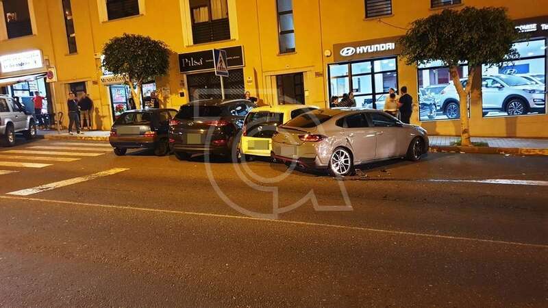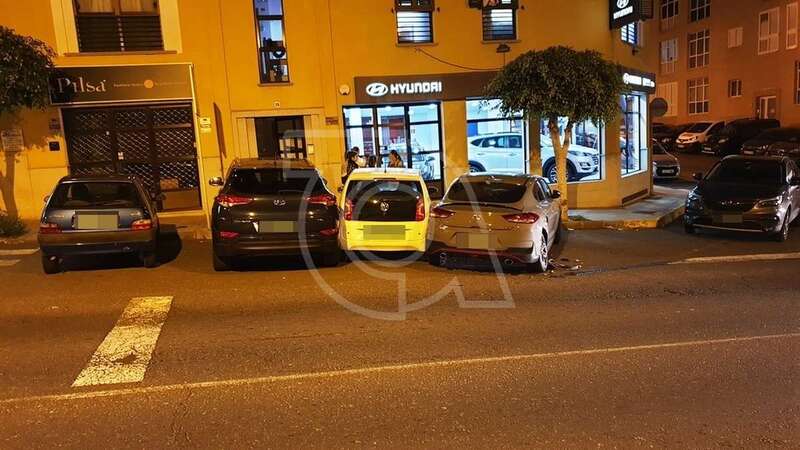 El taponazo que recibió el vehículo que estaba estacionado delante del concesionario de la marca coreana Hyundai fue tan violento que lo desplazó y le hizo chocar contra otro que estaba a su lado y este a su vez con el que tenía a su izquierda. El estruendo del golpe alarmó a vecinos y clientes de los negocios emplazados en la zona.
