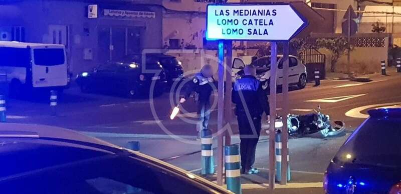 La Unidad de Atestados de la Policía Local de Telde se ha encargado de instruir las diligencias del siniestro, que originó daños de consideración a la moto y vehículo.