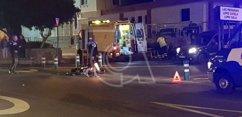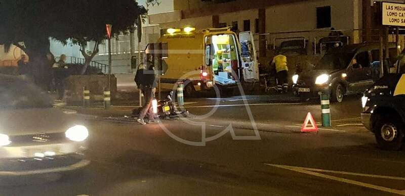 El motorista está siendo atendido en estos momentos por el personal de una ambulancia del Servicio de Urgencias Canario en el mismo lugar del accidente de lesiones de carácter leve en un tobillo. Sería trasladado minutos después al Hospital San Roque.