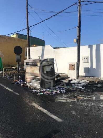 Según indicaron testigos presenciales a TELDEACTUALIDAD, el incendio afectó a un recipiente de los varios situados en un punto de recogida de residuos, próximo a un poste de la luz de Unelco y a una señala de tráfico, que resultaron también dañadas.