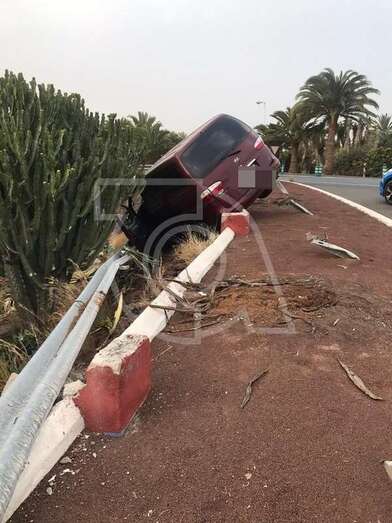A tenor de los datos captados por TELDEACTUALIDAD, el vehículo, por causas desconocidas, se desplazó de la vía, invadió una pequeña zona de picón y chocó con una valla metálica protectora que impidió que cayera por un terraplén donde crece antiguos captus y palmeras que da al carril de subida de la Avenida del Cabildo.