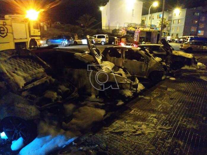 Telde.- Cuatro vehículos se han visto afectados en la noche de ayer viernes en la calle de Fernando Sagaseta, en la localidad grancanaria de Jinámar (Telde), por un incendio de grandes dimensiones en el que se registraron varias explosiones, tal y como avanzó TELDEACTUALIDAD.