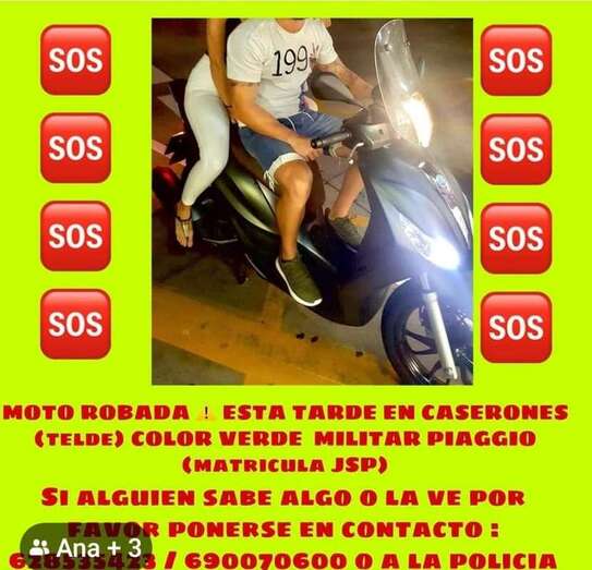Telde.- El propietario de una moto Piaggio matrícula 5875-JSP solicita la colaboración ciudadana para encontrarla, ya que fue robada este martes por la tarde cuando estaba aparcada delante del establecimiento Sub 24 en la calle de Río Tormes.