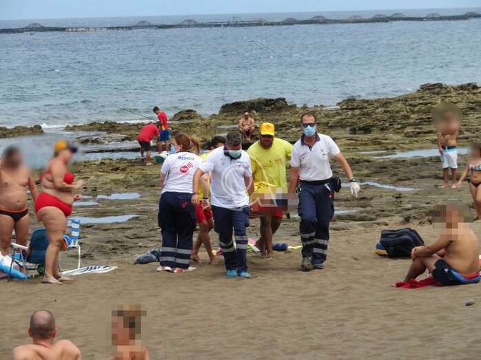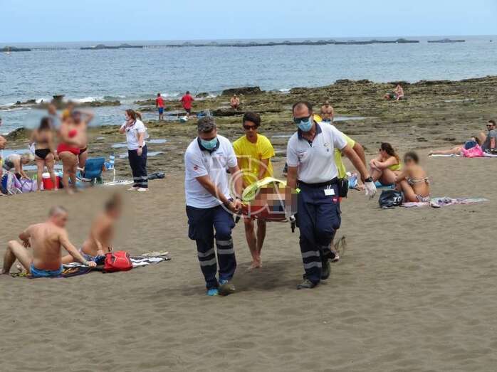 Hasta el lugar se desplazaron efectivos del equipo de Salvamento y Socorrismo y de dos ambulancias del SUC, una de soporte vital básico y otra sanitaria, que tras, atender in situ, a la desfallecida la trasladaron en camilla hasta una de las unidades móviles del Servicio de Urgencias Canario que la evacuó primero al Centro de Salud de El Calero y luego al Hospital Insular de Gran Canaria.