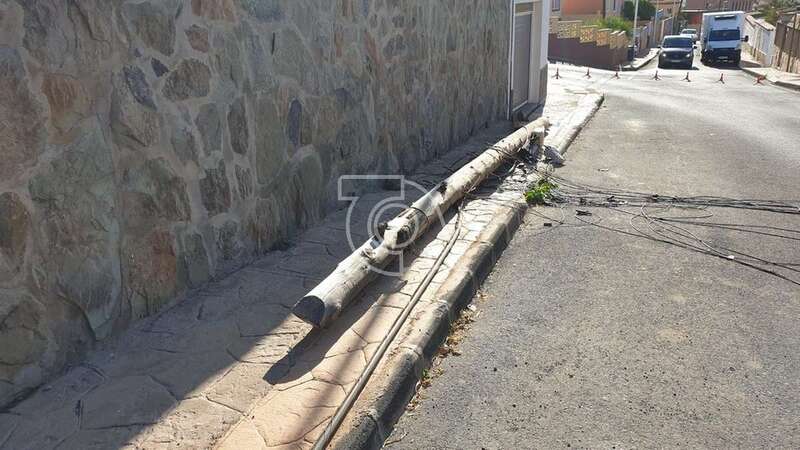 El suceso ocurrió al filo de las 16.00 horas de este sábado, según precisaron in situ a un reportajero de TELDEACTUALIDAD vecinos que residen en las viviendas colindantes al punto donde tuvo lugar la caída del poste, que ha dejado sin servicio de telefonía e internet a varios domicilios del lugar.