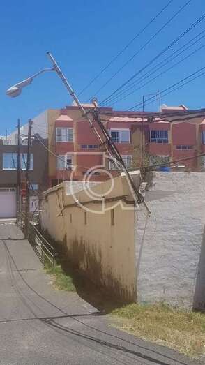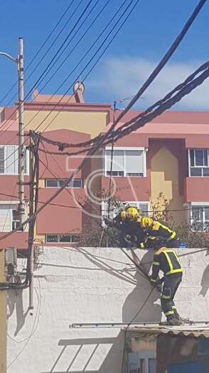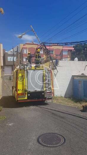 Telde.- Un poste metálico del tendido eléctrico y alumbrado público, clavado a la fachada de un inmueble, se cayó de forma parcial a primera hora de la tarde de este domingo en la calle de Petrarca, en el sector poblacional de La Pardilla.