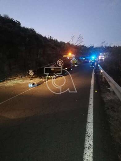 El suceso ocurrió minutos antes de las 21.30 horas, a tenor de la información captada por TELDEACTUALIDAD, y se está investigando las posibles causas del siniestro. Lo que ha trascendido de momento es que el vehículo tuvo un accidente y quedó con el chasis hacia arriba, teniendo que intervenir los bomberos para enderezarlo.