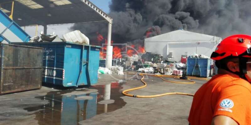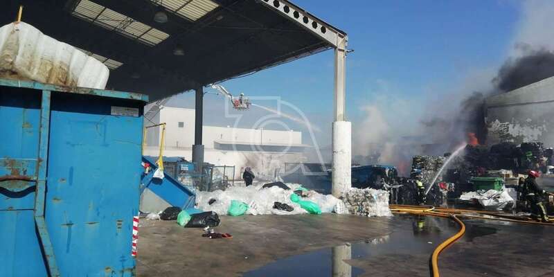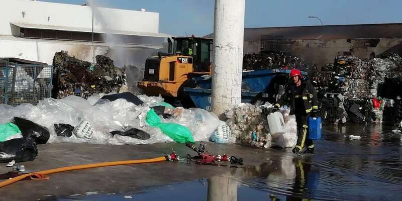 Ampliación: Los bomberos ponen bajo control el incendio en la planta de reciclaje de Martínez Cano en El Goro