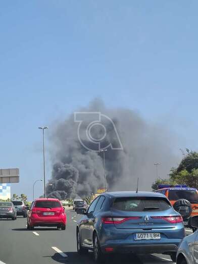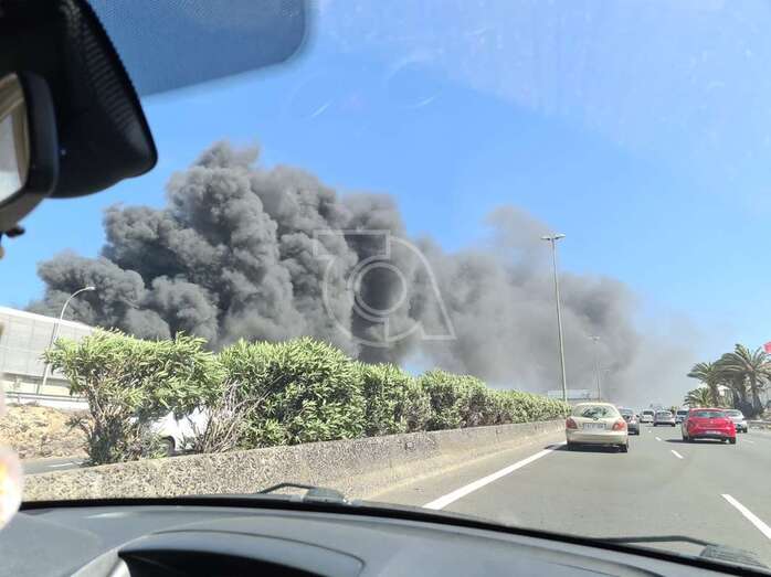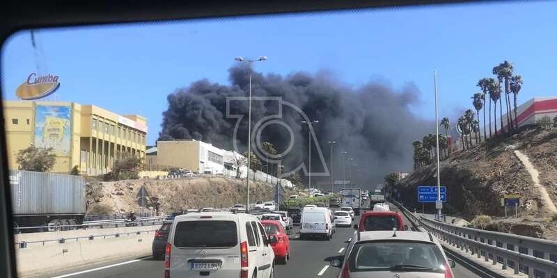 Telde.- Un incendio se ha desatado hace unos minutos en la zona industrial de El Goro, en el sector enclavado en la parte poniente. La densa columna de humo es visible a gran distancia.