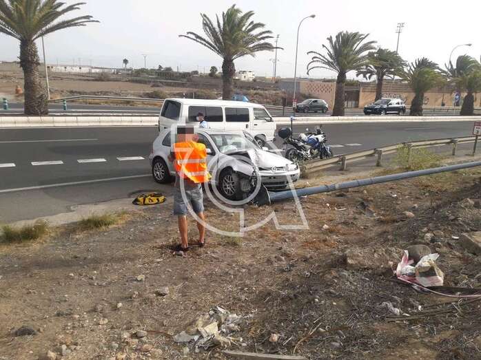 Telde.- Un turismo se llevó por delante una farola del alumbrado público en un accidente ocurrido esta mañana en el enlace con la Avenida del Cabildo desde la rotonda de la circunvalación e3n sentido La Garita, poco antes de llegar a la calle de Sagrario.