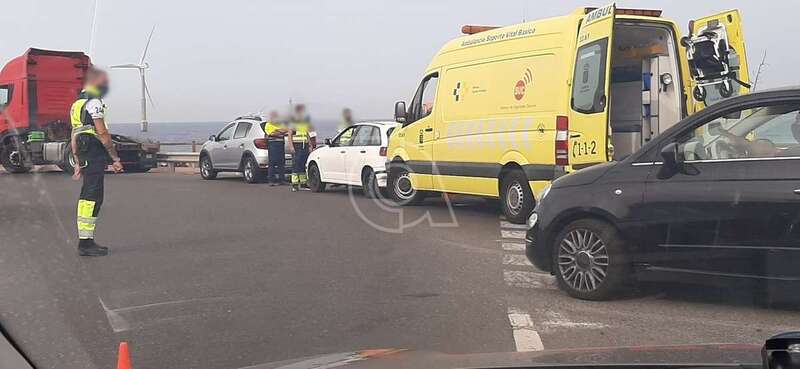 Un herido en una colisión en la rotonda de salida de Jinámar hacia la GC1