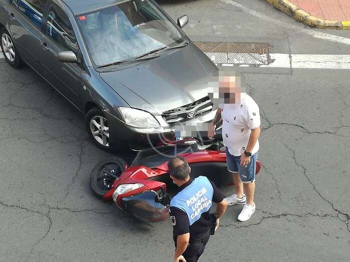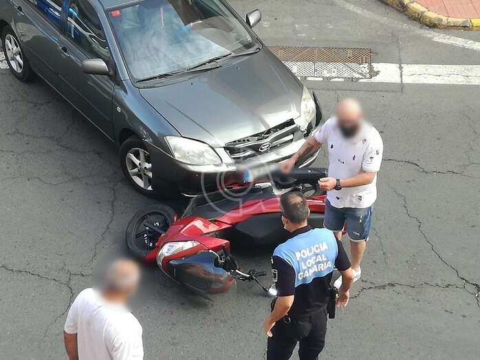 Telde.- La carretera general de La Pardilla (GC-101) fue escenario a media tarde de este viernes de una colisión entre un turismo y una moto, en su intersección con la calle de Alexander Bell.