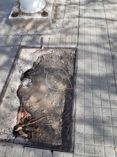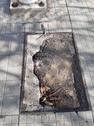 La madre pide al Ayuntamiento de Telde la reparación urgente de estos peligrosos huecos abiertos en las aceras de Jinámar.