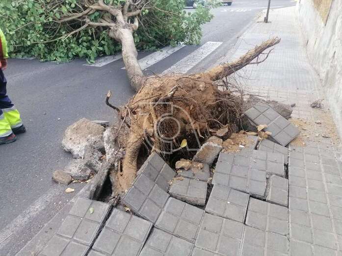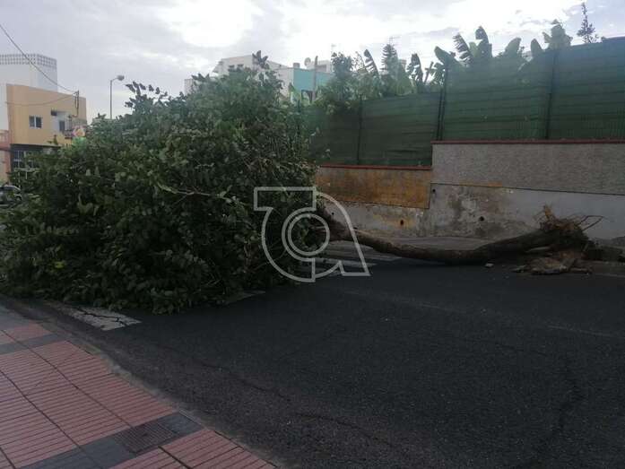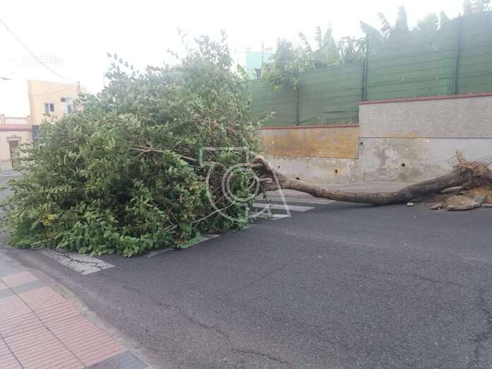 Telde.- Las rachas de viento que han soplado en las últimas horas en Telde han provocado la caída de un árbol en la calle de El Ejido, en un punto próximo a la intersección con la de Doctor Melián.
