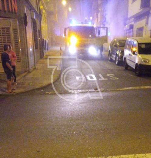 Una unidad de bomberos del parque zonal de La Garita se encargó de sofocar el fuego y la Policía Local se responsabilizó de levantar atestado de lo ocurrido. Se usaron más 500 litros en sofocar las llamas, que afectaron también a un carrito de la compra y al frontal de un vehículo que estaba aparcado en la calle.