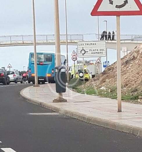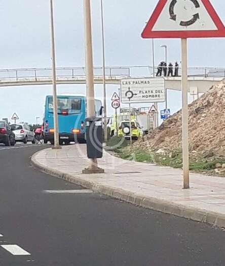Telde.- Bomberos del parque zonal de La Garita tuvieron que intervenir hace poco más de media hora, al filo de las 15.30 horas, en el puente elevado que está sobre el vial costero, a la altura de la entrada a Playa del Hombre, ante la caída de cascotes sobre la carretera.