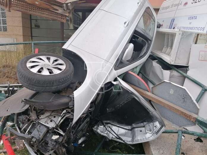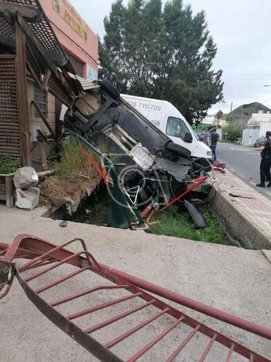 Según testigos presenciales, el aparatoso siniestro tuvo lugar pasadas las 10.30 horas de este viernes, 1 de enero, y el vehículo, que circulaba a gran velocidad, quedó incrustado finalmente en un pequeño hueco situado entre la acera y la fachada de un inmueble con el chasis hacia arriba, después de colisionar con vehículo que estaba aparcado.