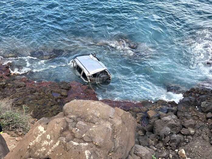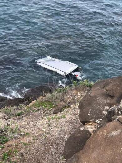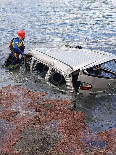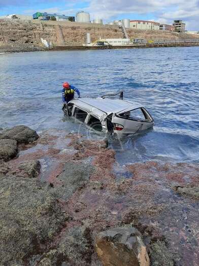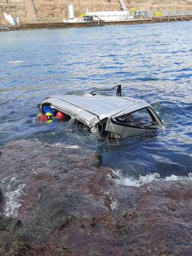 Según las primera informaciones captadas por TELDEACTUALIDAD, el suceso ocurrió al filo de las 15.11 horas, momento en que el vehículo del pescador se precipitaba por el acantilado de cuatro metros de altura y cayó al mar, quedando semisumergido sobre los riscos por la marea.