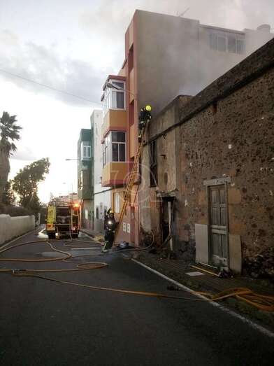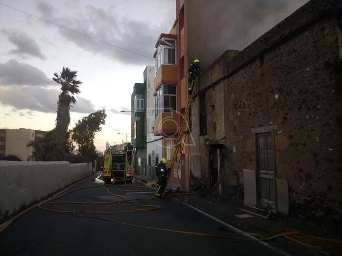 Telde.- Más de dos horas de arduo trabajo y casi 10.000 litros de agua emplearon los bomberos del parque zonal de Telde para sofocar un incendio que se declaró en un inmueble de San Antonio, situado en el número 38 de la calle de Marqués de Muni, frente a la histórica ermita del lugar.
