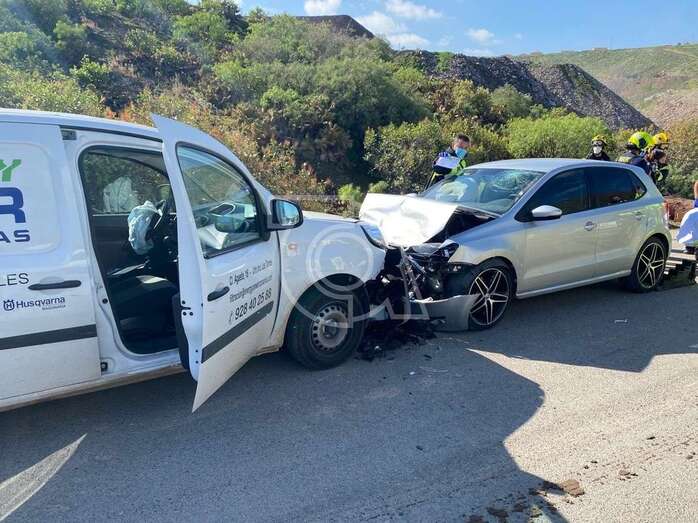 Fruto del choque, dos personas sufrieron lesiones, una mujer de 29, con traumatismo torácico, y un hombre de 30 años, con traumatismo en un codo. Fueron evacuados en una ambulancia de soporte vital básico del Servicio de Urgencias Canarios al Hospital Insular.