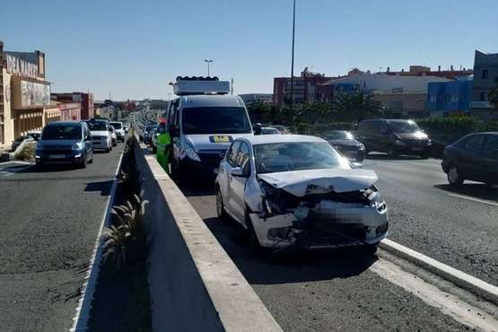 Las llamas y una densa columna de humo negro son visibles desde las carreteras (Avenida del Cabildo y vial costero) que pasa por las inmediaciones y desde puntos alejados del municipio.
