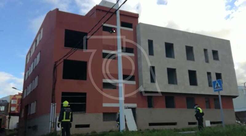 Telde.-. Nuevo incendio en el edificio abandonado ocupados por indigentes que está en la parte baja de La Pardilla, en la calle de Petrarca. Unidades de los bomberos se encuentran actuando ya en el lugar.